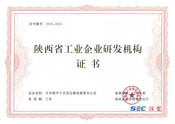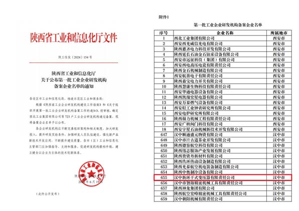 近日,陕西省工业和信息化厅正式发布了《关于公布第一批工业企业研发机构备案企业名单的通知》。经过严格的评审,新环干变成功获批陕西省第一批工业企业研发机构。这是对我公司不懈努力与卓越追求的高度肯定,也是我公司在发展道路上的一座重要里程碑。